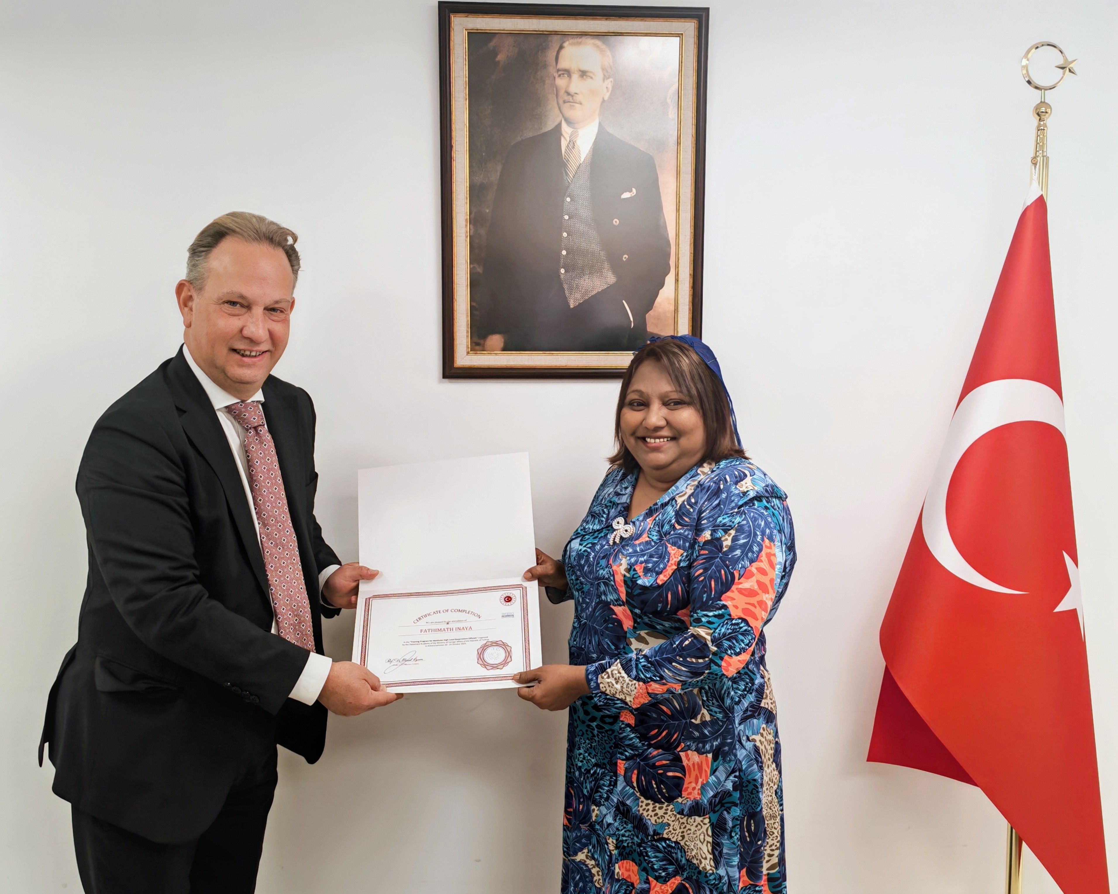 The Academy organized a capacity development program for 12 senior officials from various public institutions of the Republic of Maldives, including State Minister for Foreign Affairs Sheryna Abdul Samad and Secretary of the Ministry of Foreign Affairs and Chairman of the Foreign Service Institute Fathimath Inaya, between October 20-24, 2025.